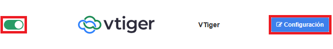 - Acceda al apartado Integraciones y haga clic en "Configuración" en el módulo de VTiger.