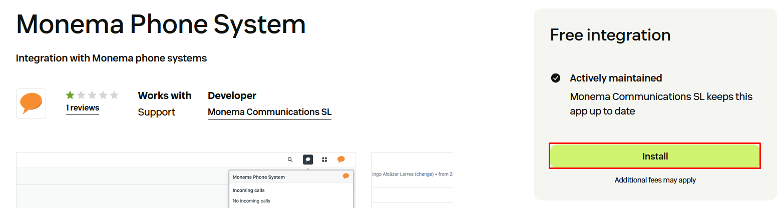 - Escriba en el cuadro de búsqueda "monema" > Haga clic sobre la aplicación de "Monema Phone System".